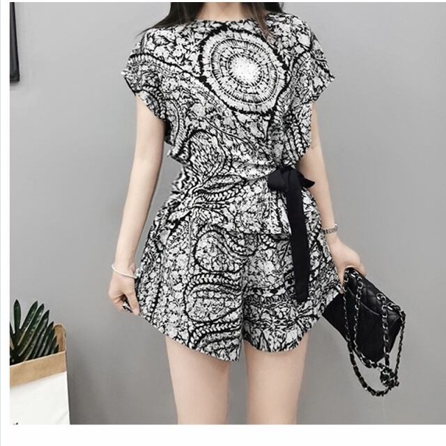 夏服 レディース セットアップ ブラウス 半袖 トップス ショートパンツ ミニ丈ワイドパンツ ツーピース レディース 韓国 オルチャン ファ