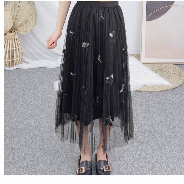 チュールスカート 大きい 韓国 ファッション ロングスカート チュール レース レディース フェミニン 大人可愛い 体型カバー 人気物 夏