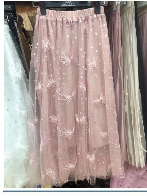 チュールスカート 大きい ロング丈のガーリーなフレアチュールスカート