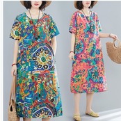 韓国 ファッション レディース 大きいサイズ 大きいサイズ レディース 花柄 総柄 ワンピース Vネック 半袖 ロング 大人 オーバーサイズ