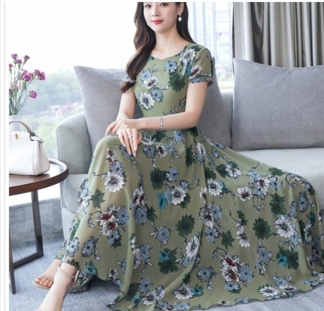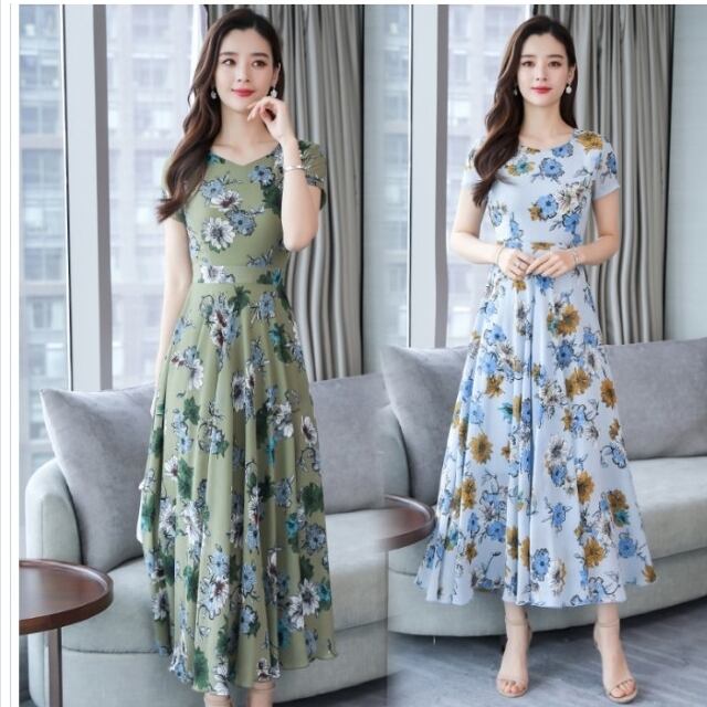 韓国 ファッション レディース 大きいサイズ ワンピース二次会大きいサイズレディースシフォンお呼ばれワンピUネックマキシ丈ワンピフォ