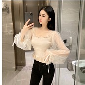 シースルー トップス 長袖 トップス レディース 長袖 シフォン レース メッシュ シースルー ペプラム 上品 フェミニン 大人かわいい 大人