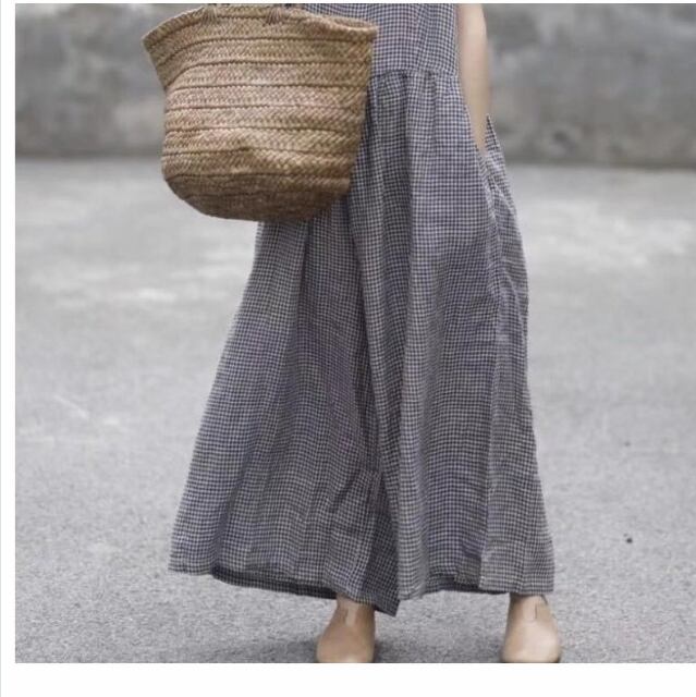 チュールスカート 大きい 大きいサイズ レディース ニットワンピース 秋冬ノースリーブ ギンガムチェック ゆったりワンピ ミモザ丈 ブラ