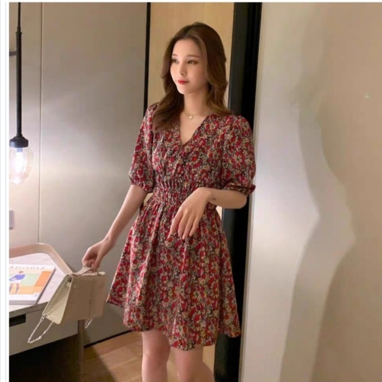 韓国 ファッション レディース 大きいサイズ 大きいサイズ レディース 小花柄 フレアワンピース Vネック オーバーサイズ 韓国ファッショ