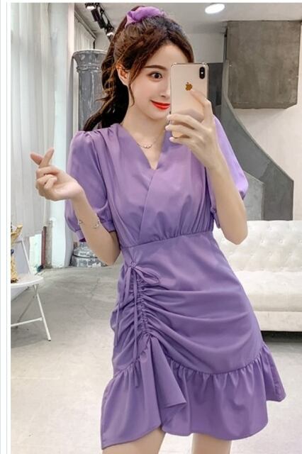 韓国 ファッション レディース 大きいサイズ 大きいサイズ レディース 胸元カシュクールワンピース シャーリングギャザースカート オーバ