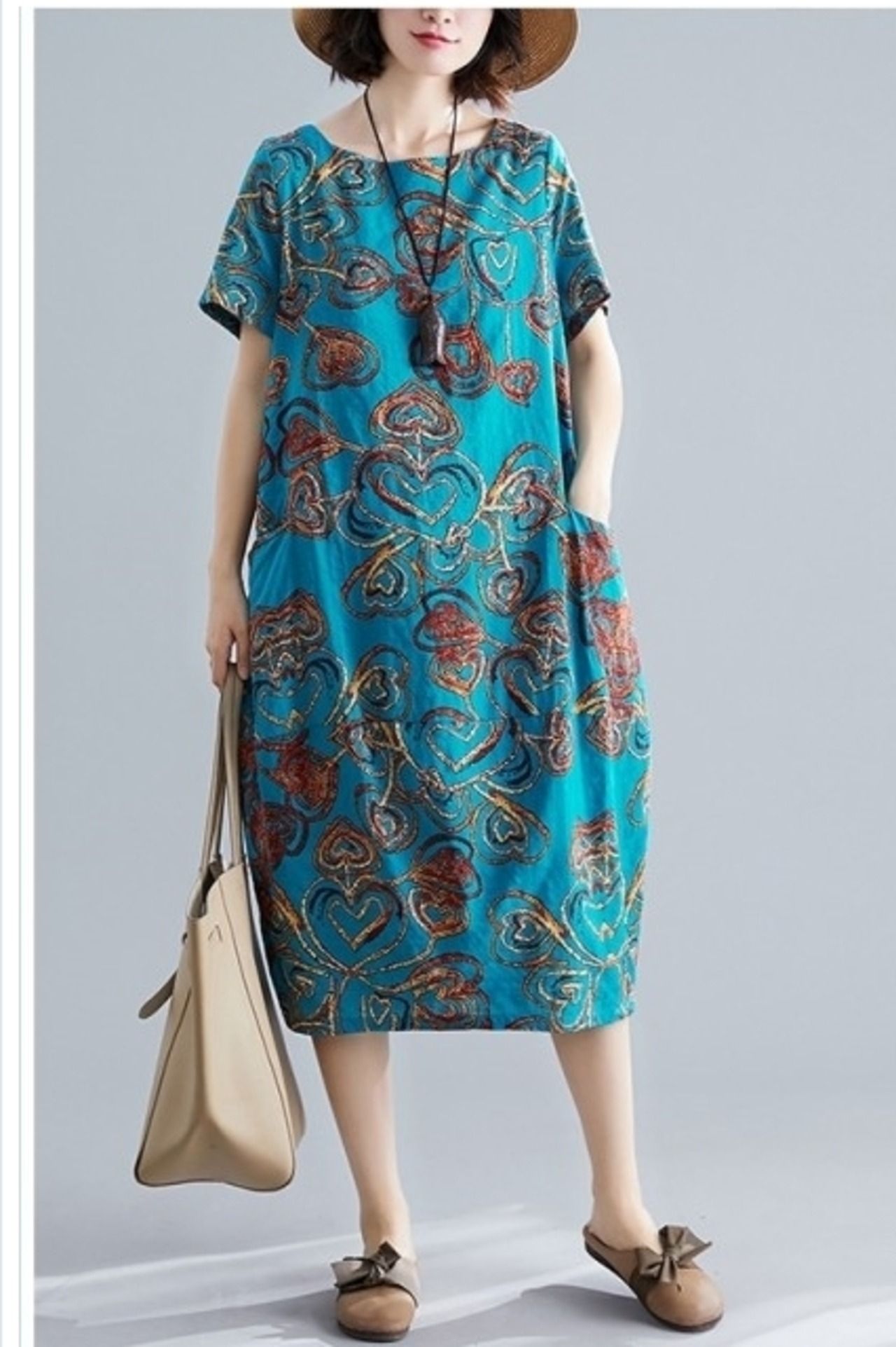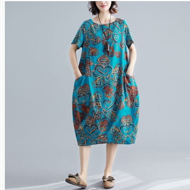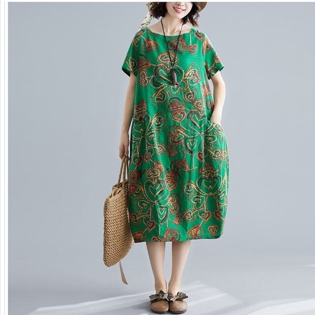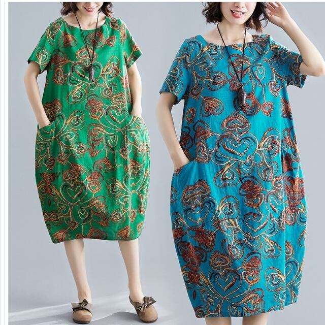 韓国 ファッション レディース 大きいサイズ 大きいサイズ レディース 総柄ワンピース 半袖 ロング シンプル 大人デザイン オーバーサイ