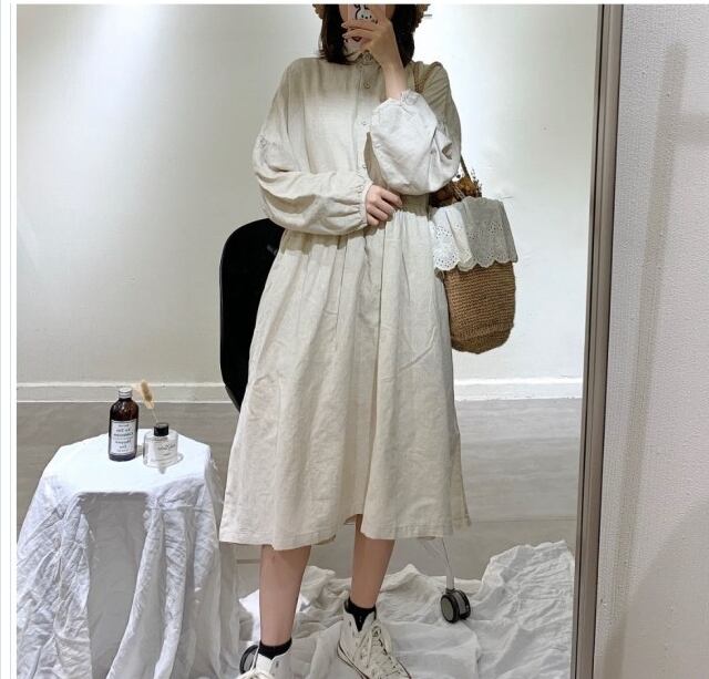 ゆる ワンピース 春新作 ドルマンスリーブ コットンガウンワンピース レディース トップス ワンピース ワンピ ロング シャツワンピースシ