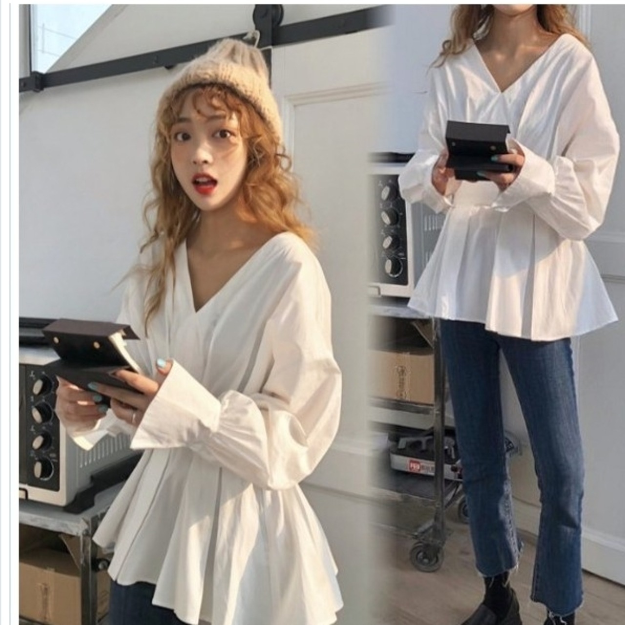 韓国 ファッション レディース 大きいサイズ 春新作 ブラウス レディース カシュクール ブラウス 韓国 ブラウス 春 秋 冬 オフィス シャ