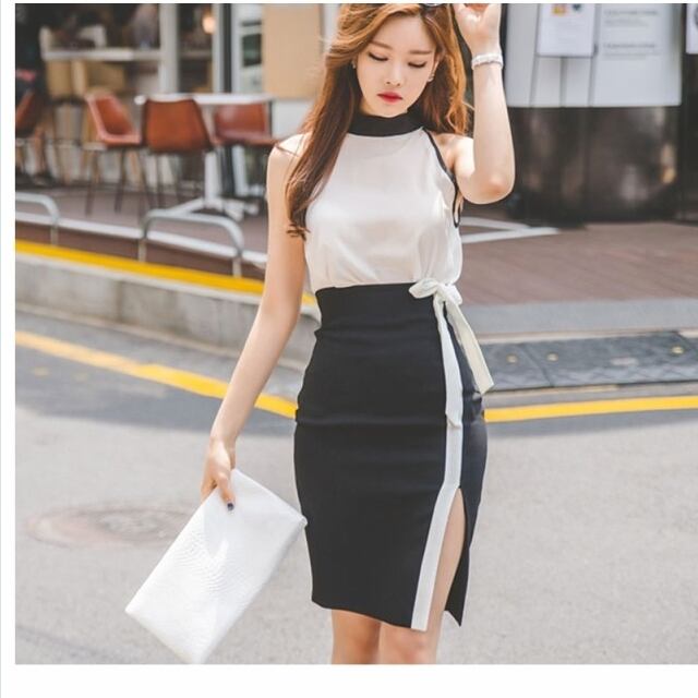 ハイネック ノースリーブ ノースリーブブラウス レディース トップス ハイネック バイカラー ホワイト ブラック リボン 上品 大きいサイ