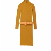 チュールスカート 大きい 大きいサイズ レディース ニットワンピース 秋冬ハイネック サイドスリット ミモザ丈 2カラー ワンピース ニッ