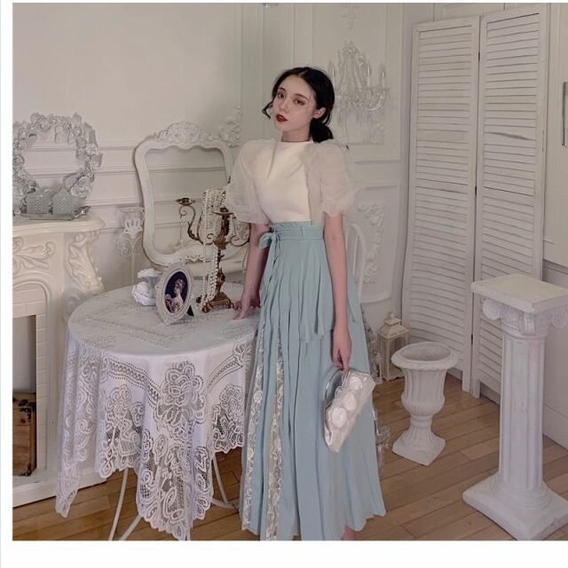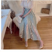 チュールスカート 大きい レディース スカート ウエストリボン シフォン チュールスカート 花柄 フレア ロング マキシ エレガント