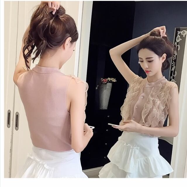 ハイネック ノースリーブ レディースファッション トップス ノースリーブ ブラウス レース ホワイト ブラック ブルー カーキ ペールオレ