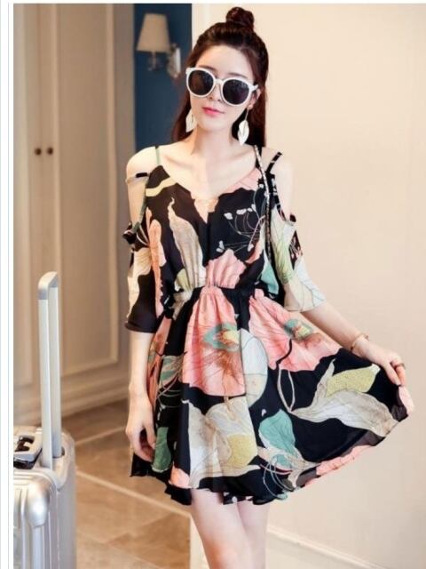 ワンピース 花柄 ワンピース レディース 夏 ワンピース ドレス 花柄ワンピース ショット丈 ミニワンピ 結婚式 肩あき オシャレ大人かわい