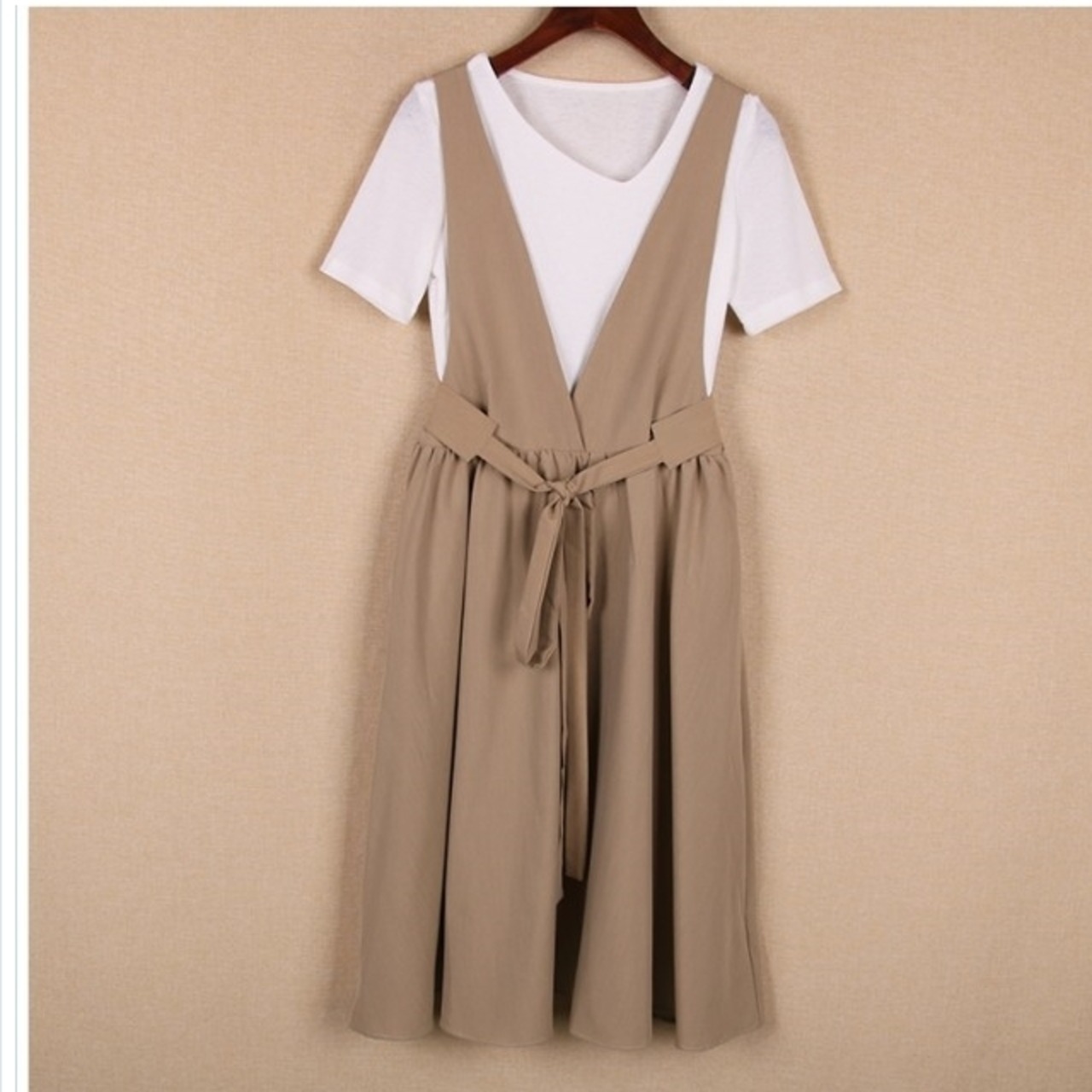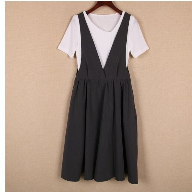 ボリュームタック ディージーワイ D*g*y リネンオックスVネックジャンパースカート M L 3L レディース エミュラル