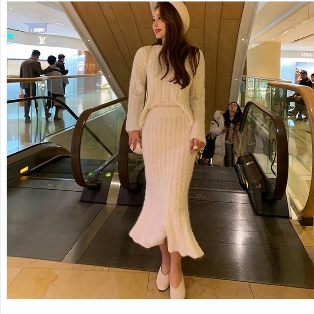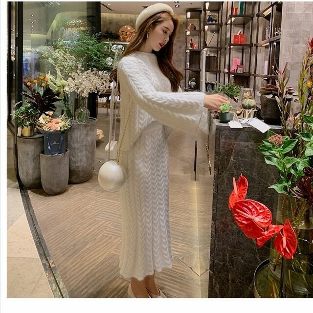 チュールスカート 大きい 大きいサイズ レディース ニットワンピース 秋冬ケーブルニット ハイネック ミモザ丈 2カラー ワンピース ニッ