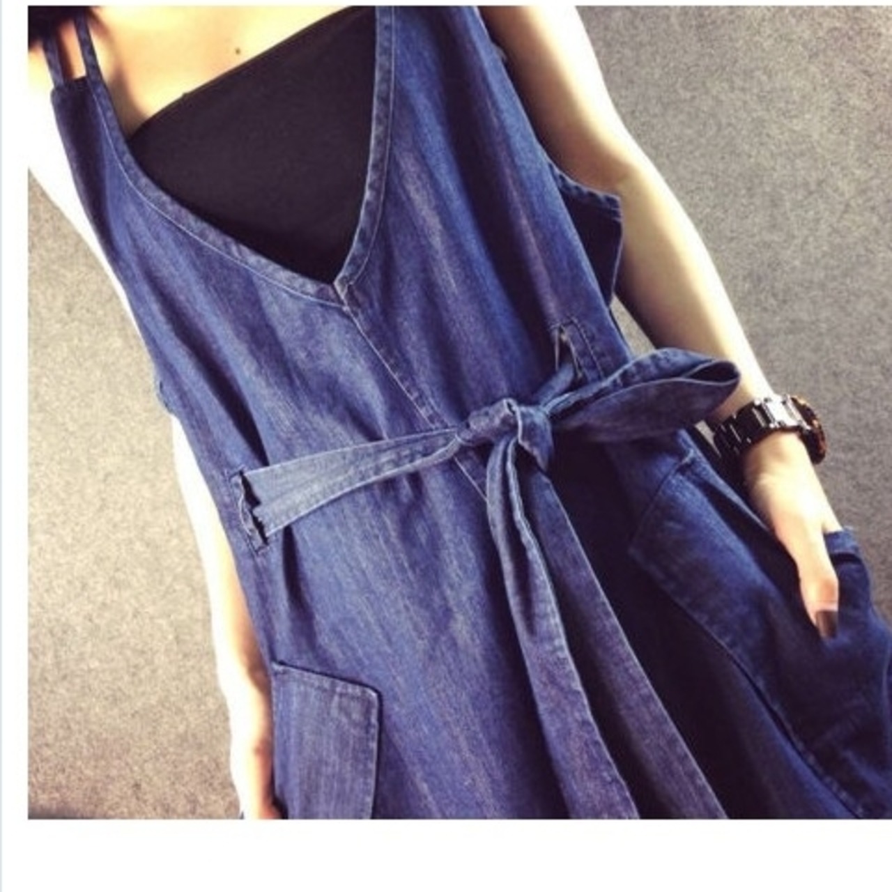 チュールスカート 大きい ワンピースドレス 大きいサイズ レディース ワンピース ボーイッシュ女子おすすめ!デニム素材+ウエストリボン