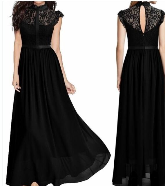 ボリュームタック パーティードレス ワンピース 結婚式 レース マキシワンピース レディース Aライン(ブラック, M)