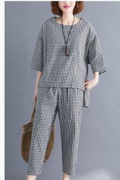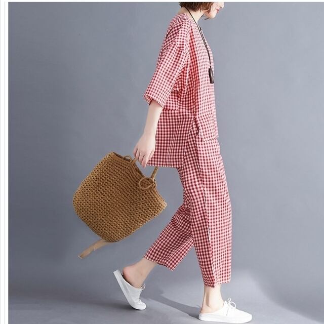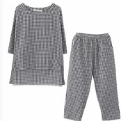 ボリュームタック 大きいサイズ フランス製素材ギンガムチェック 刺しゅうブラウス
