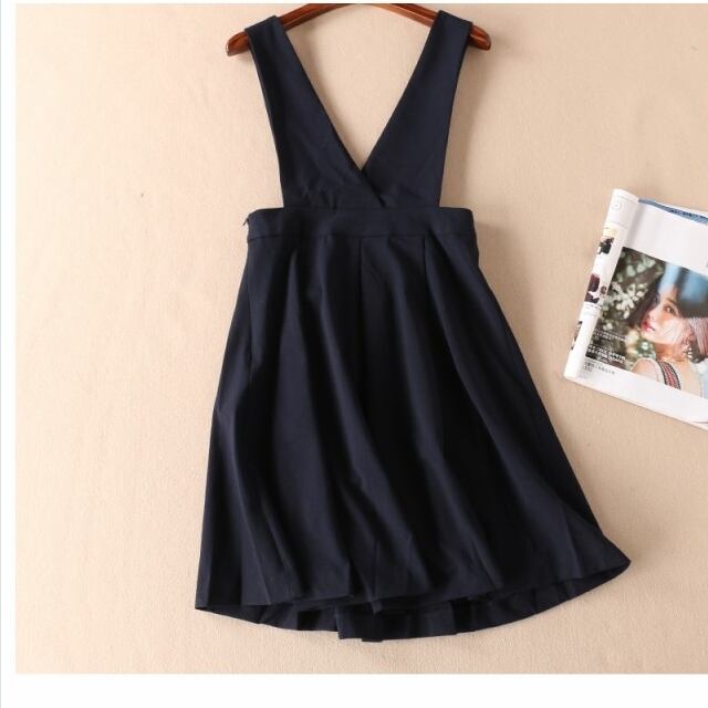 ハイネック ノースリーブ L-13 ジャンパースカート Vネック ワンピース サロペット オールインワン フレアスカート 通年 Mサイズ カーキ