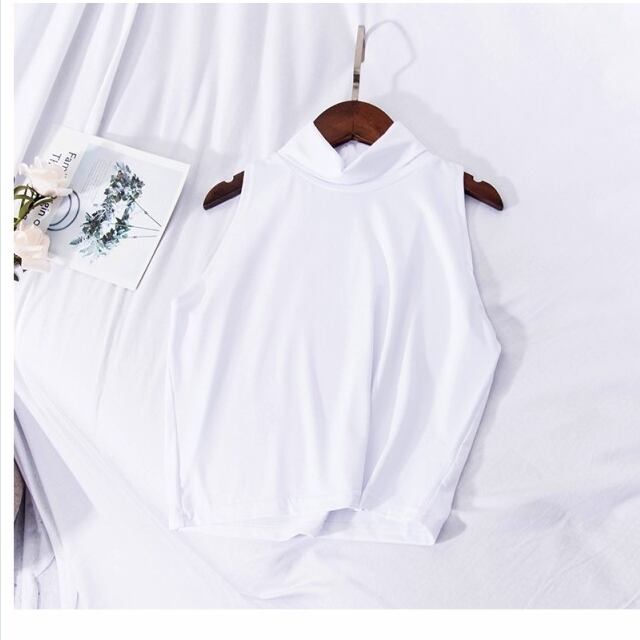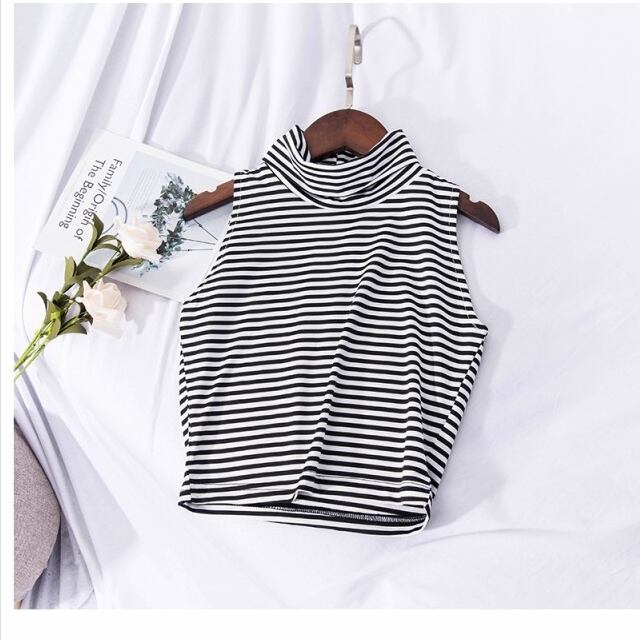 ハイネック ノースリーブ ミエコウエサコ M U ノースリーブカットソー M レディース 白×黒 ボーダー ハイネック