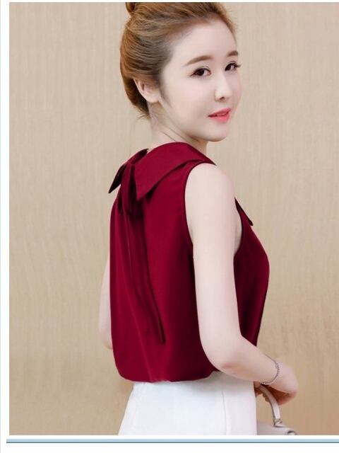 ハイネック ノースリーブ ジョーゼットドットブラウス