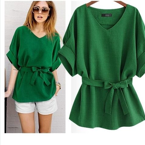ドルマントップス半袖 半袖 綿 麻 チュニックブラウス シャツ ウエストリボン ベルト ドルマンスリーブ 大きいサイズ 無地 トップス 春