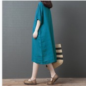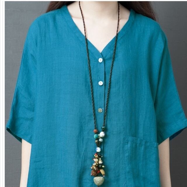 レディース ロングtシャツワンピース 大きいサイズ レディース 半袖 ロング丈 リネン ロングTシャツ 無地 ヘンリーネック 大きいサイズ