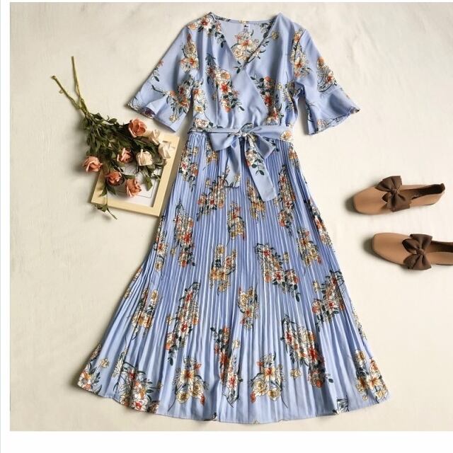 クラシカル ワンピース 大花柄 シック クラシカル 黒 透け感 長袖 フレア プリーツ ワンピ ロング丈