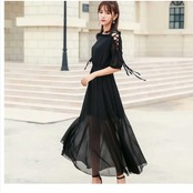 クラシカル ワンピース すずらん刺繍 ウエストマーク ワンピース きれいめ 刺繍 パフスリーブ ワ