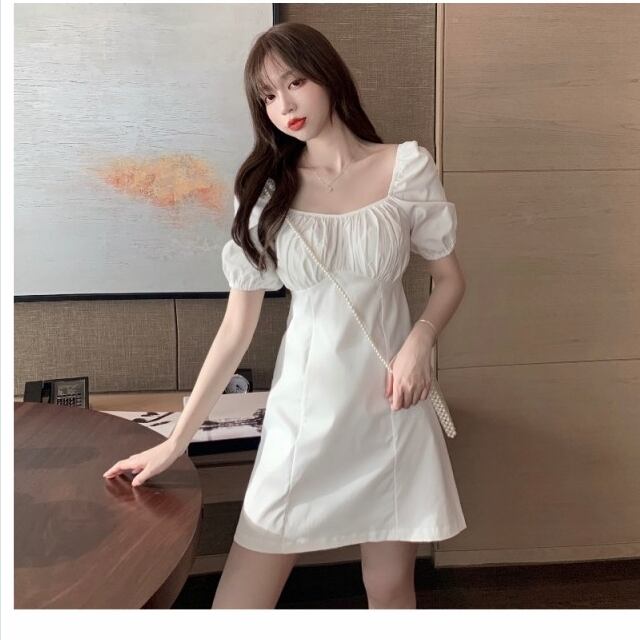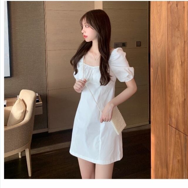 クラシカル ワンピース ワンピース ミニ丈 パフスリーブ ハイウエスト 無地 2色 オルチャン 韓国ファッション プチプラ