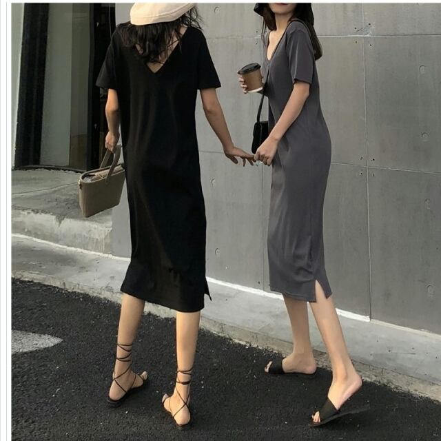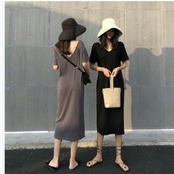 レディース ロングtシャツワンピース 大きいサイズ tシャツワンピース 半袖 夏 通勤 お洒落 40代 Vネック クロス ゆったり 30代 旅 体型
