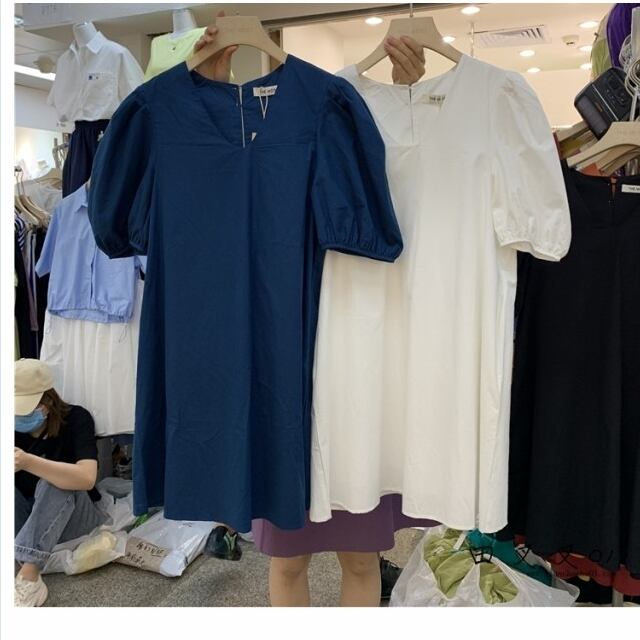 クラシカル ワンピース メルロー 袖口 スキッパー Aライン ワンピース 無地 リラックスワンピ 長袖 フリーサイズ