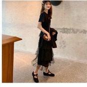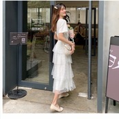 クラシカル ワンピース 丈が選べる ワンピース 半袖 モード ティアード 4段 フリル 全3色 韓国 ファション レディースファッション