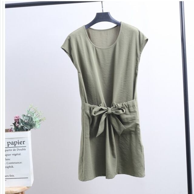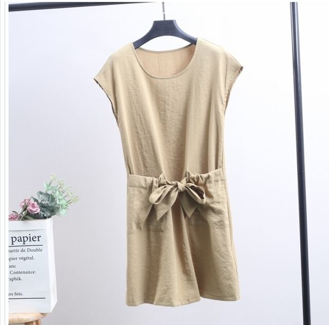 ワンピース 着丈が選べる 春夏新作 麻調フレアワンピース