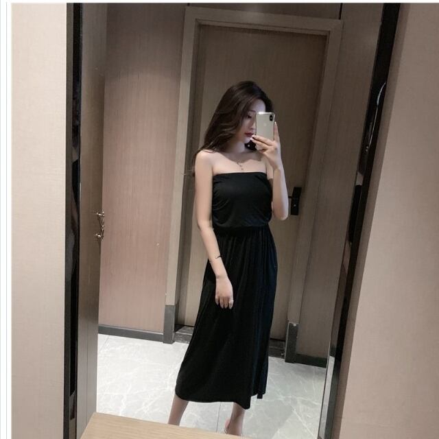 ワンピース ワンピース ウエストマーク ワンピース M Lマキシ ロング フレア 半袖 ウエストゴム Vネック ふんわ