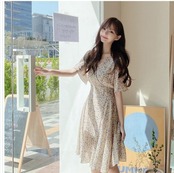 ワンピース 韓国 ファッション レディース ワンピース 夏 春 カジュアル シアー シフォン 小花 ハイウエスト フレア シンプル コーデ 定