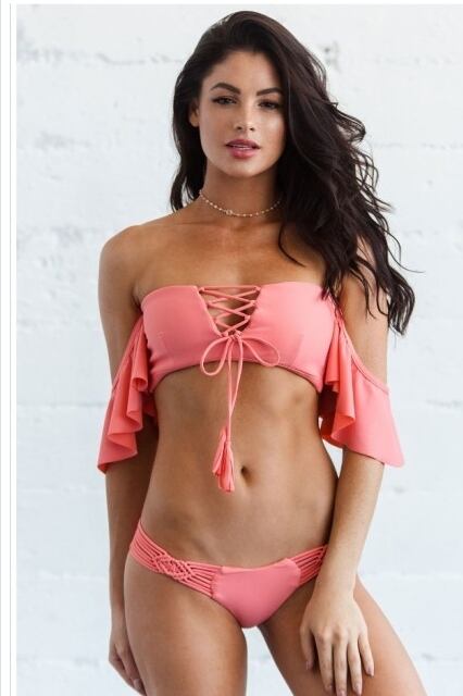 レディース ロングtシャツワンピース 大きいサイズ レディース 水着 ビキニ フロントリボン結び ホルターネック ワイヤー入り 谷間見せ