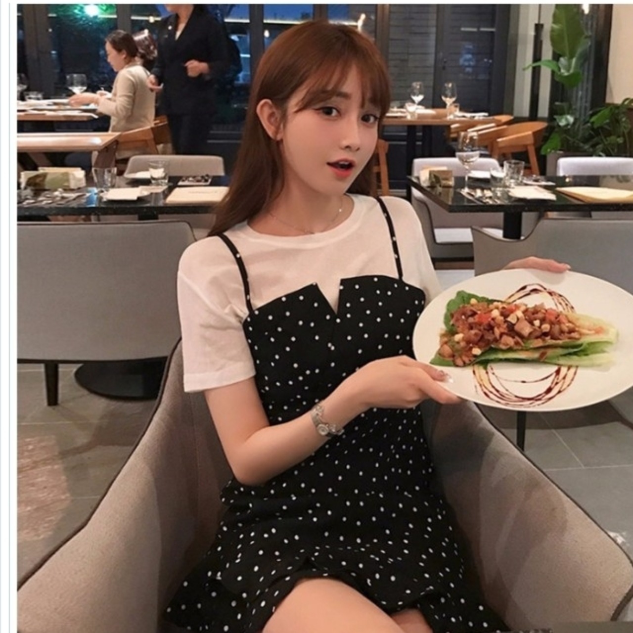 レディース ロングtシャツワンピース 大きいサイズ セットアップ キャミソールワンピース 半袖 レディース ワンピース ノースリーブ ドッ