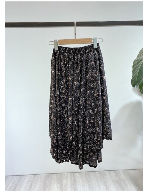 レディース ロングtシャツワンピース 大きいサイズ 新作 春 夏 フレアスカート フリル 花柄 フラワー ロングスカート ウエストゴム フェ
