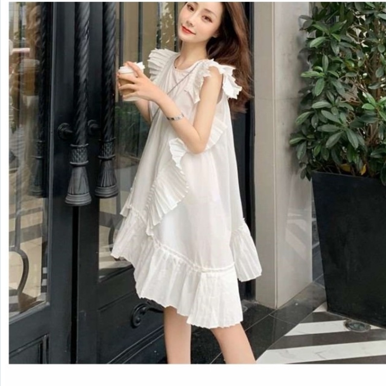 夏服 レディース ミニ丈 フリルワンピース ティアードワンピース ミニワンピース ノースリーブワンピース フレアワンピース レディース
