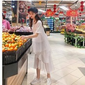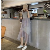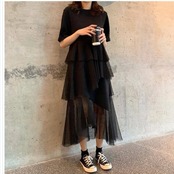 レディース ロングtシャツワンピース 大きいサイズ ぽっちゃりさんサイズ チュール使いワンピース 4L 5L 6L