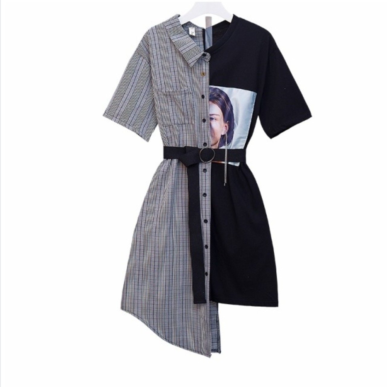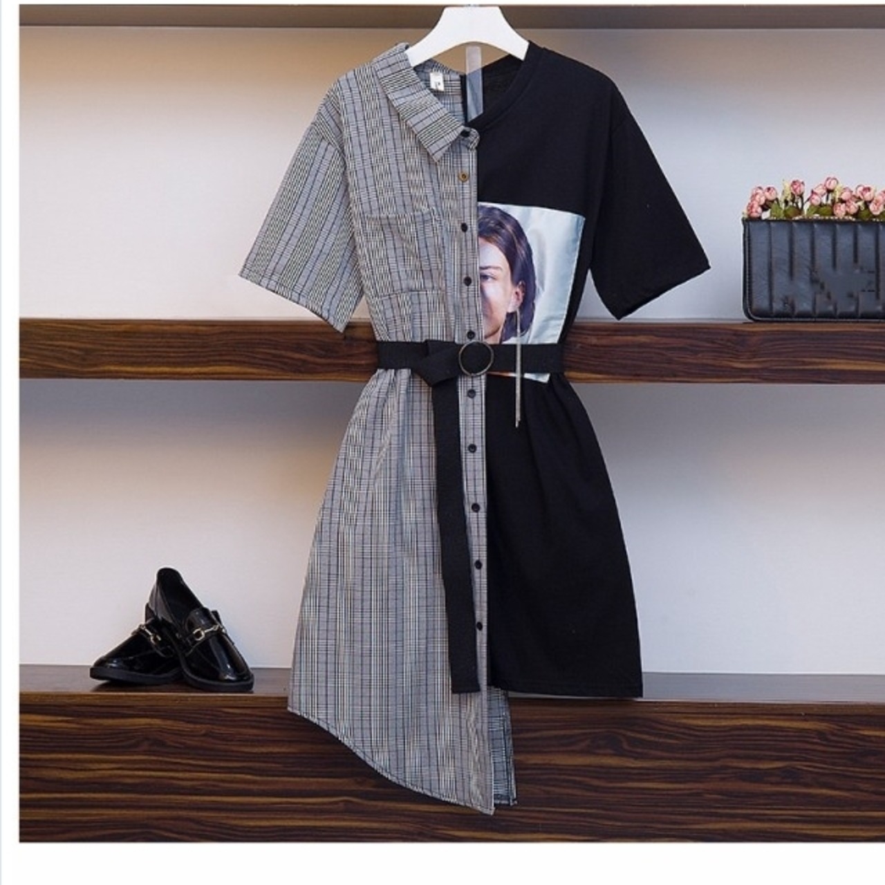 クラシカル ワンピース L 大きいサイズ レディース チェック柄 半袖 夏 ドレス ワンピース シャツ ブラック チェック 4L 2L T