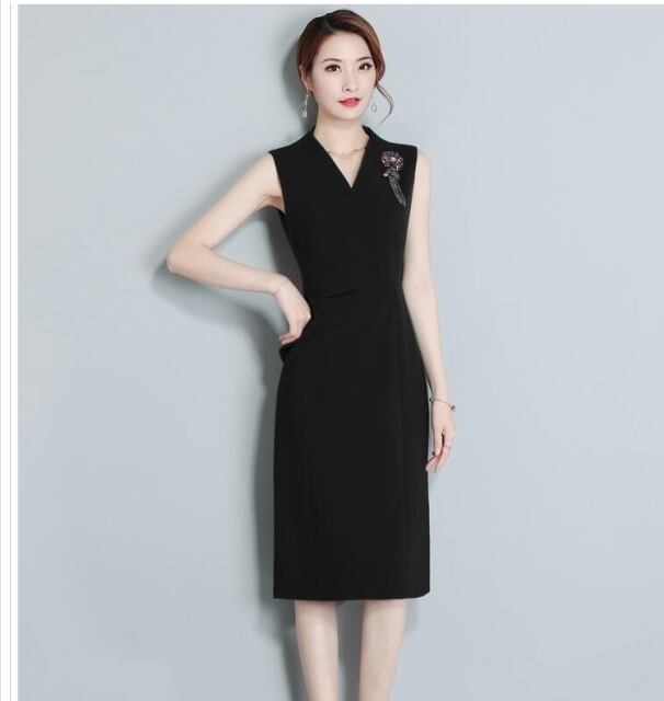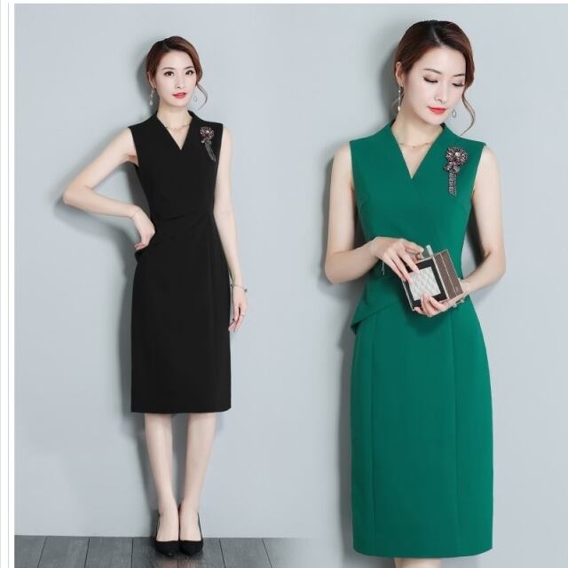 セミ フォーマル ワンピース パーティードレス イブニング ワンピース 膝丈 セミフォーマル ノースリーブ Vネック レディース きれいめ