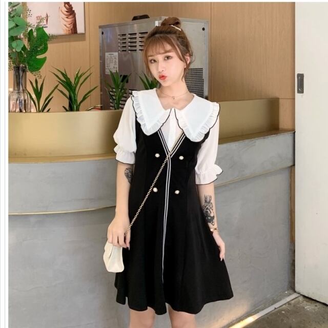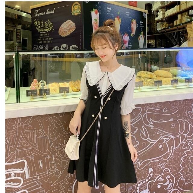 セミ フォーマル ワンピース ワンピース レディース フェイク レーヤード フリル 襟 シャツ ブラウス Vネック 重ね着風 ひざ丈 ドレス セ