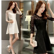レディース ロングtシャツワンピース 大きいサイズ レディース レース ドレス シースルー 花柄 Aライン タイト フレア袖 ミドル丈 ワンピ