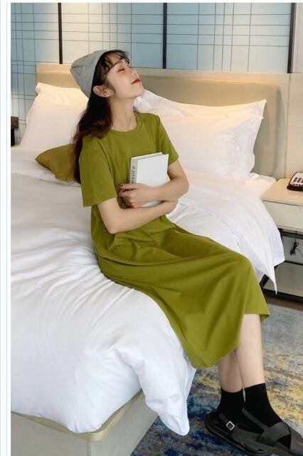 レディース ロングtシャツワンピース 大きいサイズ ロング丈 ルーム ワンピース ロングワンピース ルームウェア ルームウエア 半袖 綿(ブ