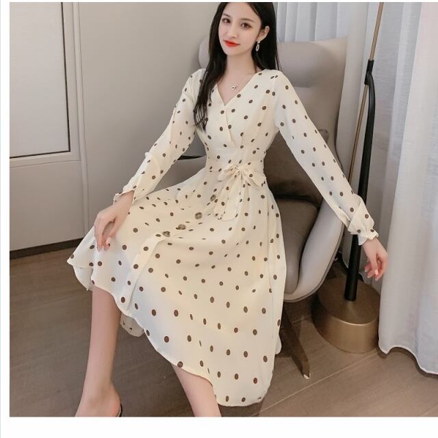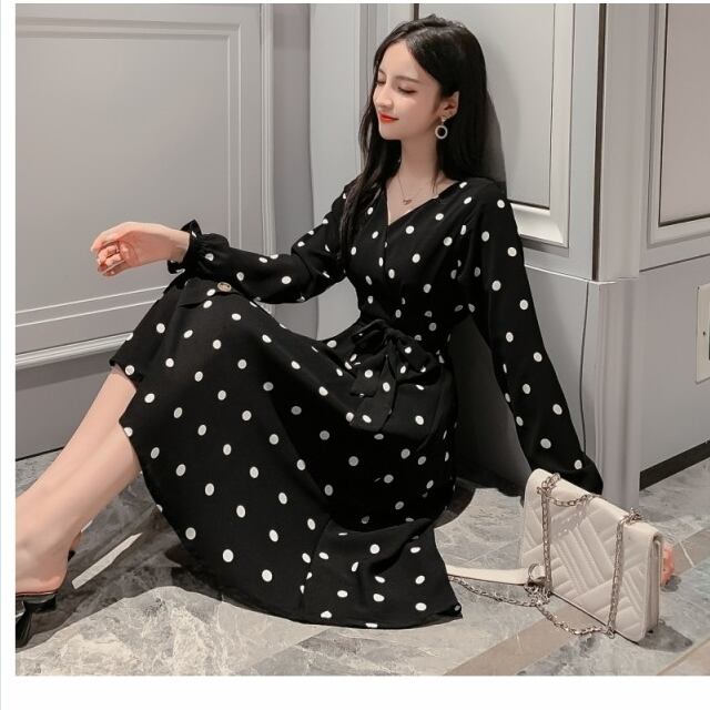 クラシカル ワンピース ワンピース レディース ドット柄ワンピース 膝丈ワンピース メッシュ 小さいサイズ ハイウエスト 上品 清楚 大人