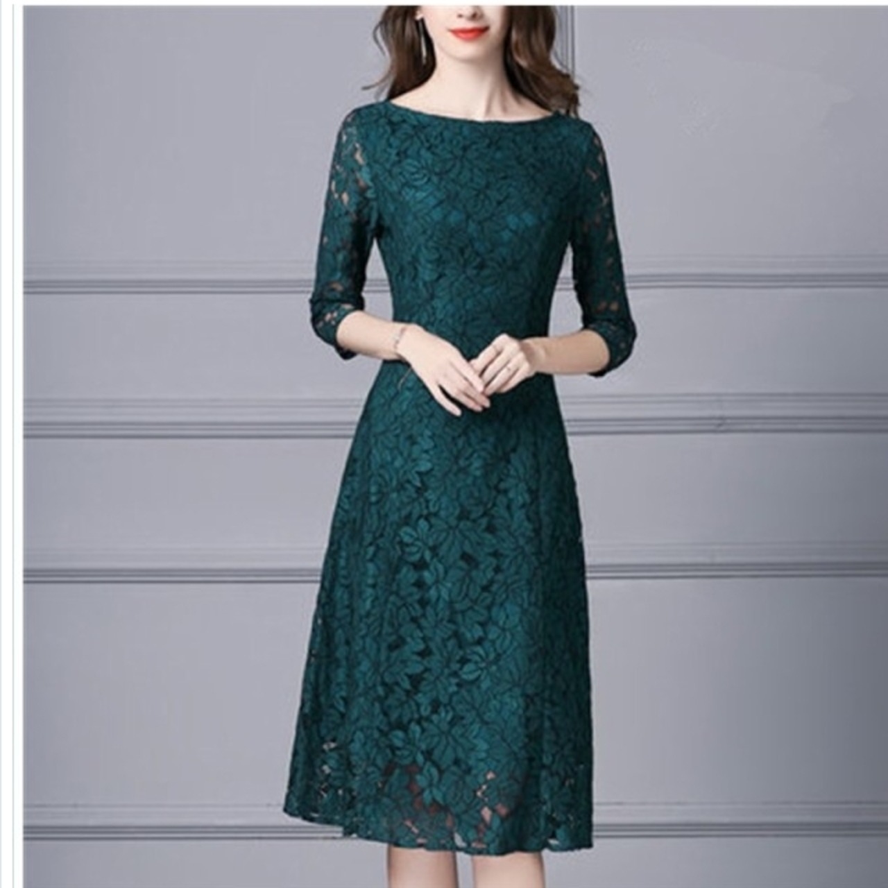 レディース ロングtシャツワンピース 大きいサイズ パーティードレス ワンピース ひざ丈 ハイネック レース タイ 秋冬 長袖 きれいめ 大