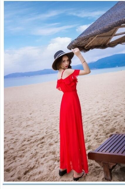 クラシカル ワンピース マキシワンピース レディース ワンピース キャミワンピ 赤 フリル 背中開き
