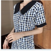 クラシカル ワンピース ワンピース 花柄 チェック柄 レトロ ブラック ホワイト モノトーン 上品 フェミニン ガーリー ひざ丈 デート くび